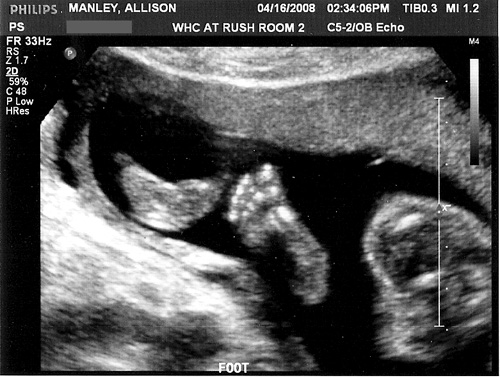 We started the blog well after the ultrasound photos were taken, so we’re going to upload them here from February 29th and April 16th. Allison’s favorite is the last one, because the technician made it very clear what we were looking at on the screen. Enjoy!