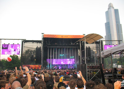 Rob and I are HUGE Radiohead fans, and have never never never seen them in concert. We’ve tried . . . oh yes, we’ve tried . . . but they don’t tour that frequently, usually play teeny tiny venues, and are therefore quickly sold out, sending the price of scalped tickets sky high. So as live-music lovers, when we heard Radiohead was the headliner for this year’s Lollapalooza, we knew we HAD to go! (plus it never hurts that about 100 other good bands were playing, including Rage Against The Machine and Nine Inch Nails, and we love going to Lolla every year anyway). Hmmm, but eight months pregnant when the concert finally arrived was going to be tough. But I’m a tough cookie, and in a record crowd of 75,0000+ in Grant Park, we got relatively close to the stage. Thanks to Bryce and Friends for saving us a spot! It was worth it!