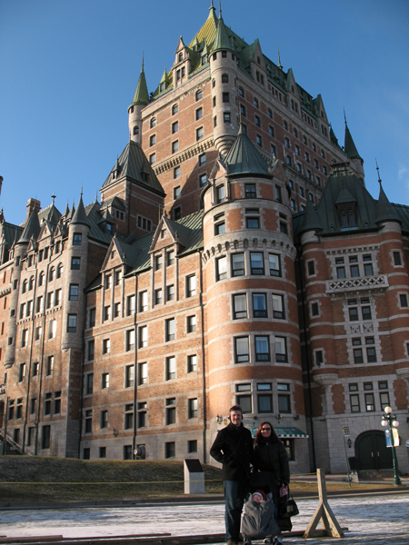 One more family portrait in front of our hotel, the Chateau Frontenac.